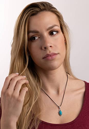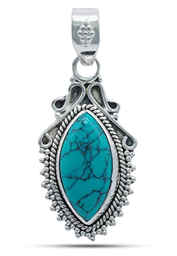 Collana argento 925 con pietre preziose Turchese pietra verde Catena in argento sterling da donna in vero argento (MAH-119-15)