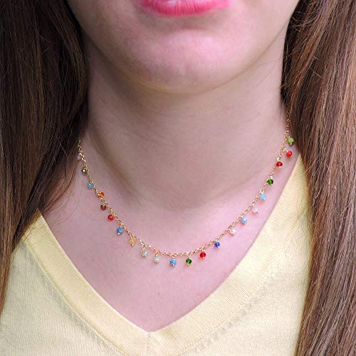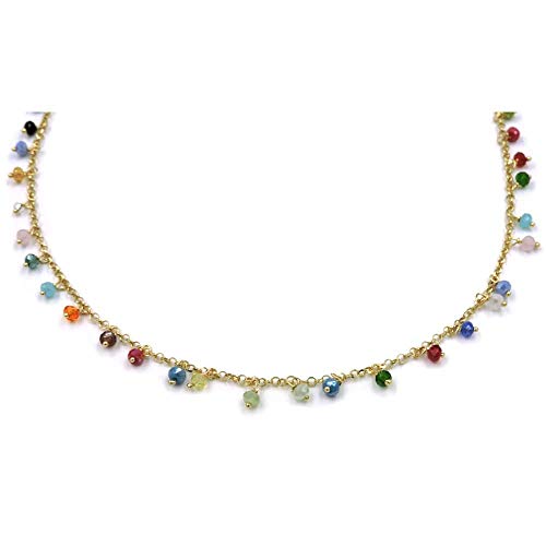 Collana in Argento 925 Placcato Oro con Pietre Colorate Argento