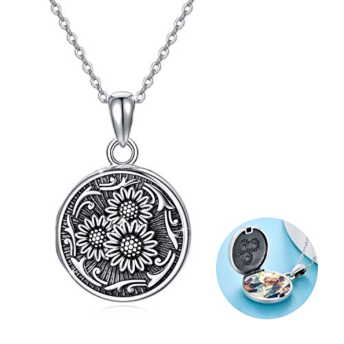 Collana in argento Sterling con ciondolo a forma di girasole, con ciondolo a forma di girasole, regalo per donne e ragazze, con scritta "Always Lock My Heart" (lingua italiana non garantita)