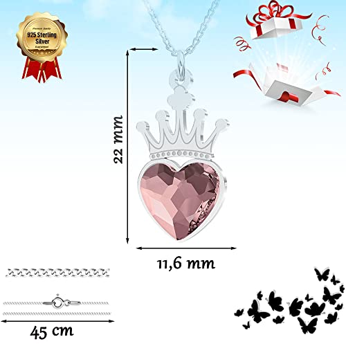 Collana in argento Sterling 925 con cristalli, corona a forma di cuore - Collana con ciondolo per donne - Gioielli da donna con confezione regalo (Antique)