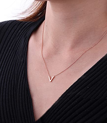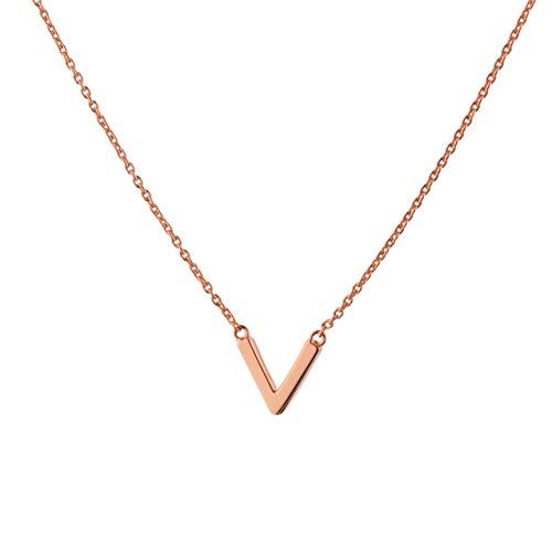 EME - Collana in argento Sterling 925 a forma di V, semplice collana impilabile in argento Sterling e Argento, colore: Oro rosa, cod. AMP3151P-45CM