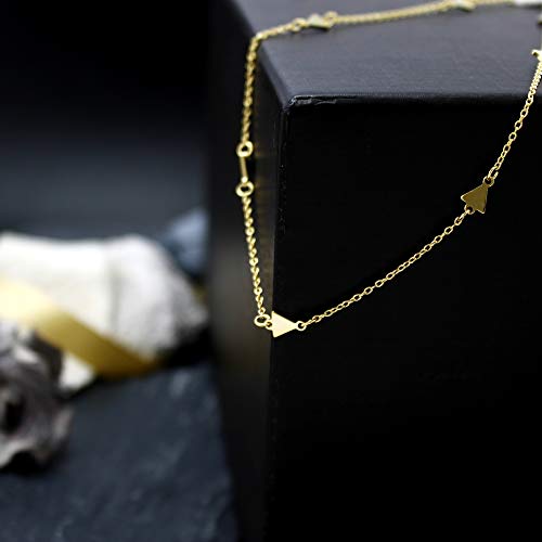 Collana in argento - Bella elegante collana in argento Sterling 925 placcato oro con triangolo di chiusura a goccia con elegante catenina regolabile da 40,6 a 45,7 cm. Questa catena può essere impilata con altri collochi. È un accessorio alla moda ed elegante per qualsiasi abbigliamento casual o per occasioni più formali.