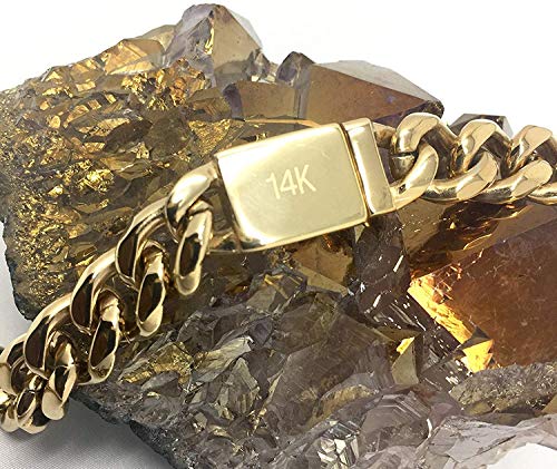 Collana in oro da 11 mm con catena cubana, per uomo e donna, placcato oro 14 K, taglio a diamante. Catena hip hop da 14 kt e Placcato oro