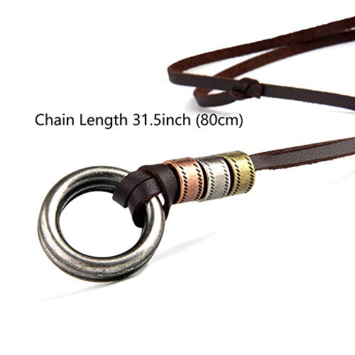 Collana con cinturino in pelle regolabile con anello per occhiali, Marrone, L