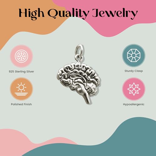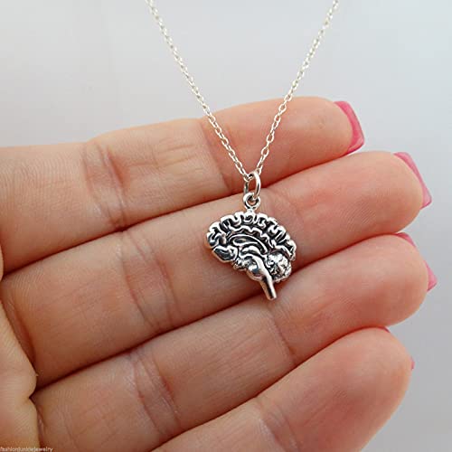 Collana con ciondolo anatomico a forma di cervello umano, in argento Sterling, 45,7 cm