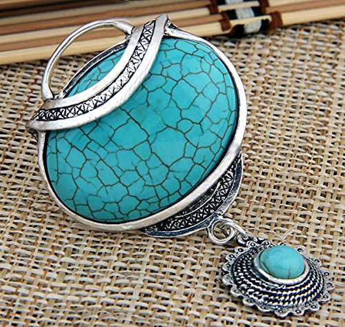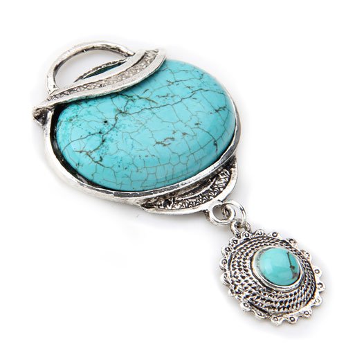 COLLANA CIONDOLO IN ARGENTO TIBETANO TURCHESE OVALE 50*42mm