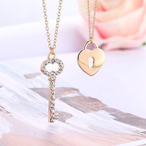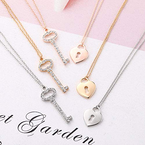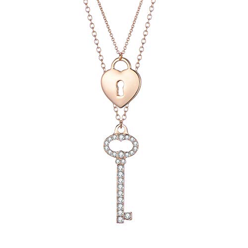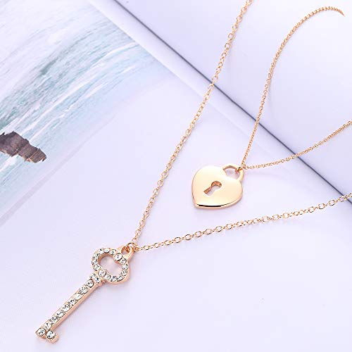 Collana con Ciondolo a Chiave e Lucchetto per Donna, Collana a Catena Lunga separabile in Oro e Argento a Doppio Strato con Cristallo Lucido Il miglior Regalo di Gioielli per Mamma, Amici