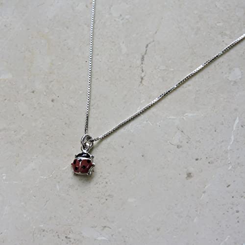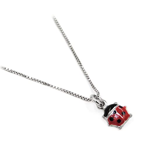 Collana con Ciondolo Coccinella Portafortuna in Argento Sterling 925 Smaltato a Mano Argento
