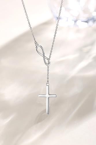 Collana Ciondolo Croce Infinito in Argento 925 Placcato Oro Bianco Minimalista Gioielli per Donna Ragazza - Catena Lunghezza: 40 + 5 cm