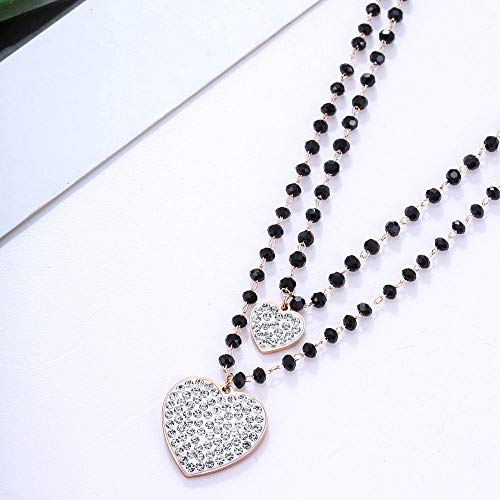 ☑MATERIALE DI ALTA QUALITÀ - Catena di cristallo nero in acciaio inossidabile placcato oro rosa e argento, antiallergico e ambientale, pendente con cristallo, placcatura sottovuoto, mai sbiadito