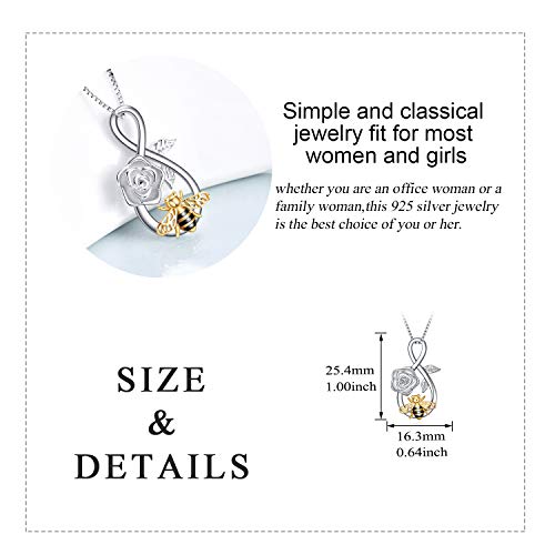 Collana con Ciondolo ape da Donna in Argento Sterling Fiore di rosa Infinito Collana con Ciondolo ape da Miele Gioielli Compleanno Regali per la Festa Della Mamma