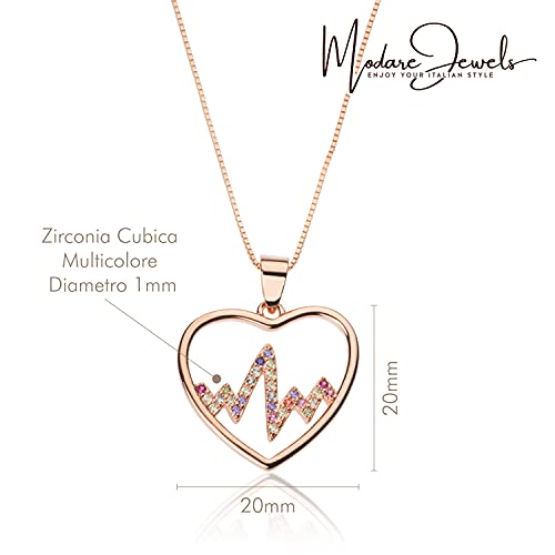 Collana Ciondolo Donna Ragazza Cuore Battito Cardiaco Multicolore Elegante Romantica | Oro Rosa | Zirconi Multicolore | Argento 925 Anallergico | Lunghezza 45 cm | Made in Italy (Oro Rosa)
