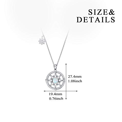 Collana con ciondolo a forma di bussola, in argento Sterling, con opale sintetico, per donne e ragazze
