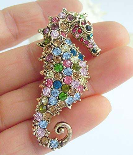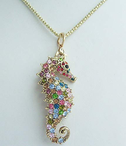 Collana con ciondolo a forma di cavalluccio marino, con cristalli austriaci UKNL2254 (color oro multicolore)