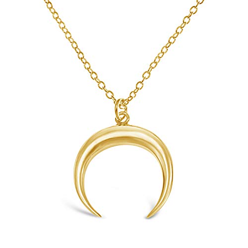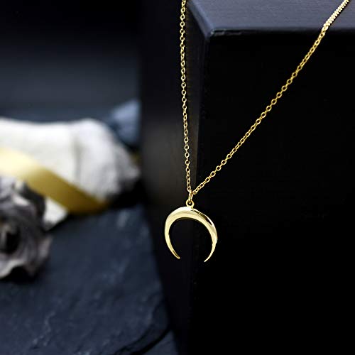 COLLANA IN ARGENTO - Bella elegante collana alla moda in argento sterling 925 placcato oro con elegante catena regolabile in argento placcato oro da 40,6 a 45,7 cm. Questa collana si basa sulla forma del corno. È un'aggiunta alla moda ed elegante a qualsiasi abbigliamento casual o per occasioni più formali.