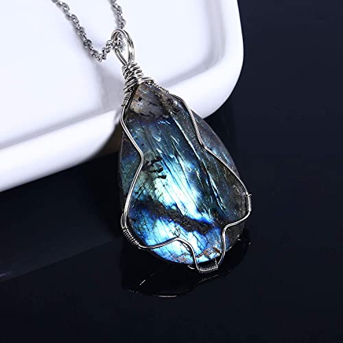 Collana con pietre naturali di alta qualità: realizzata in labradorite naturale di alta qualità, naturale e unica, variabile per colore e dimensioni. La collana con ciondolo in pietra energetica avvolto in filo è realizzata a mano con cura e amore, il che significa che il ciondolo è fissato saldamente e non si preoccupa di cadere.