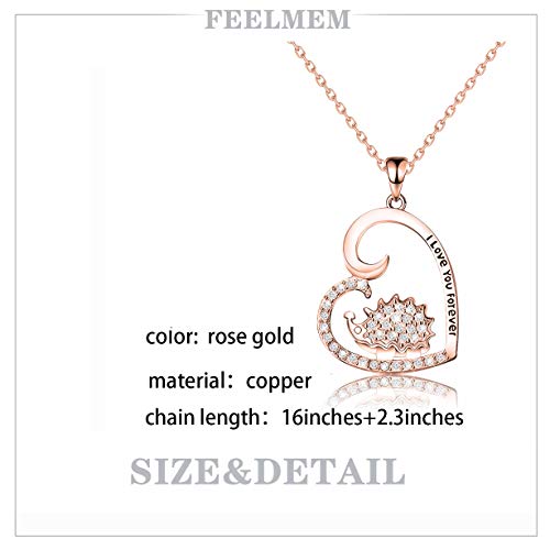 Collana con ciondolo a forma di riccio, con ciondolo a forma di cuore, con scritta "I Love You Forever", idea regalo per donne e ragazze, Small, Rame,
