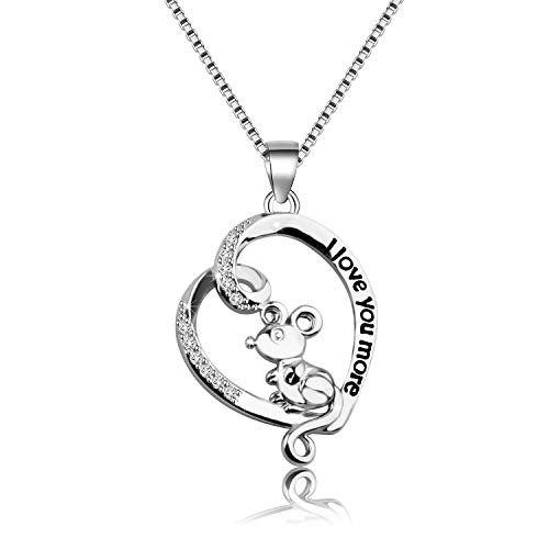 ❤Collana con topo: la collana è una collana squisita e bella con un design unico e un ciondolo a forma di cuore con scritta "I Love You More".