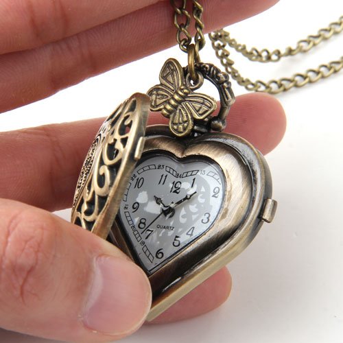 COLLANA + CIONDOLO PENDENTE OROLOGIO CUORE OTTONE 40mm