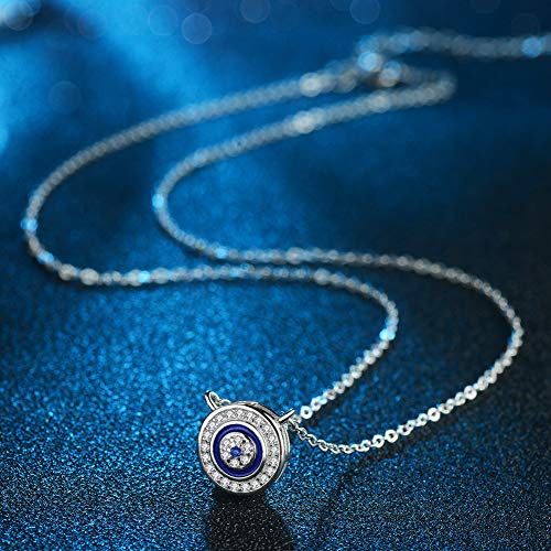 Collana con ciondolo rotondo in argento Sterling 925 con zirconia cubica regolabile, 40,6 cm + 5,1 cm di estensione e Argento, colore: Rodio, cod. TZN043