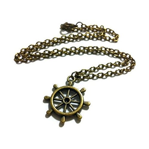 Collana con ciondolo simbolo ruota del tempo timone nave colore bronzo