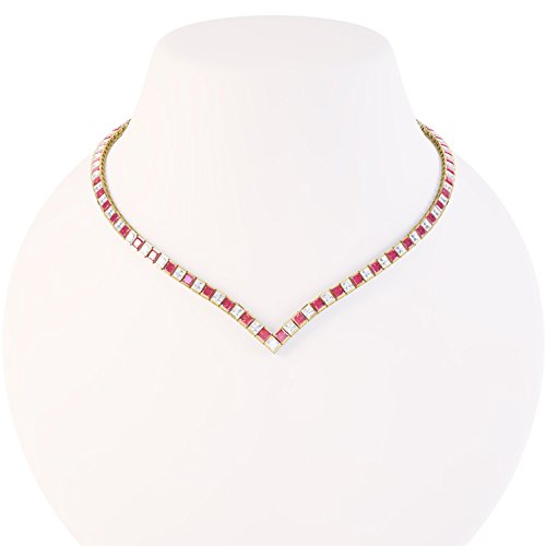 Collana Collier modello Tennis in argento con Rubini e Diamanti taglio Princess (43cm Oro)