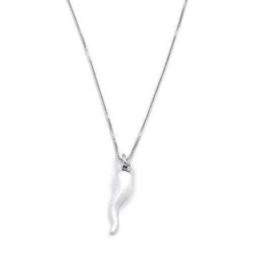 Collana con Cornetto Portafortuna in Argento Smaltato Bianco Argento