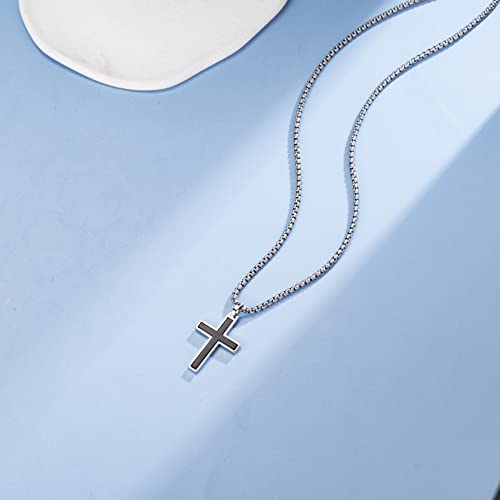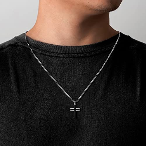 Collana Croce Uomo in Argento Sterling 925 Crocifisso Ciondolo Nera, Hip-Hop Gioielli Regalo per Lui Ragazzi Bambini - Catena Lunghezza: 60 cm