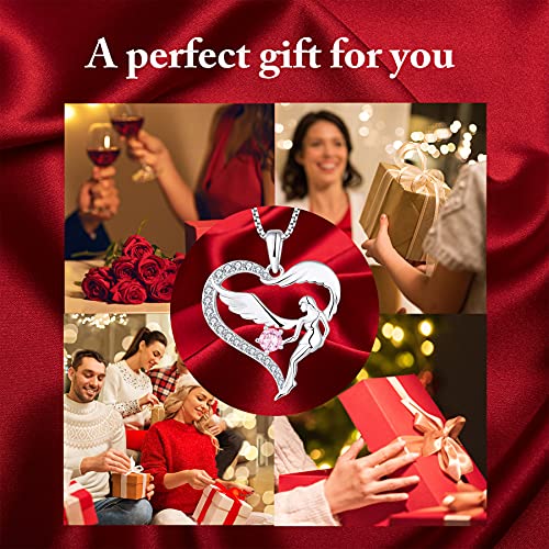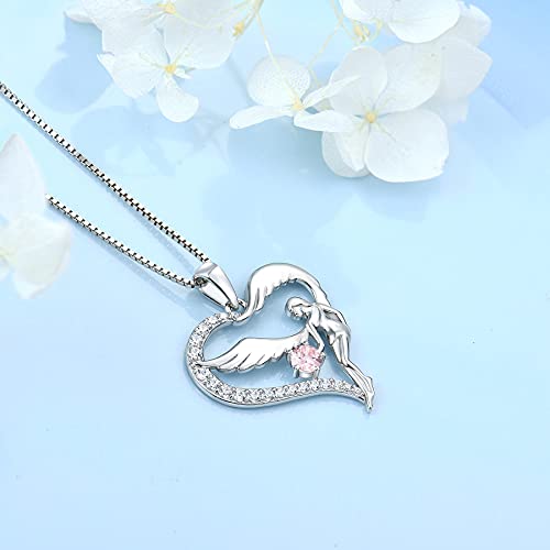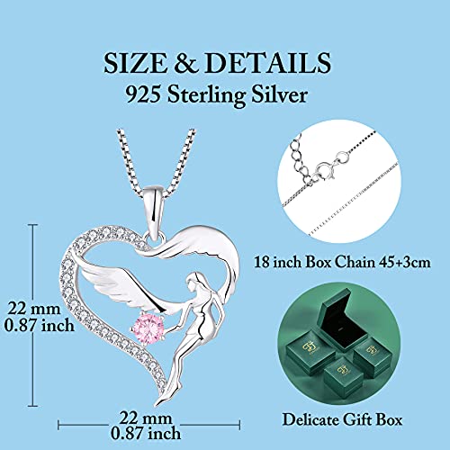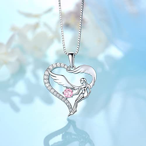 FJ Collana Cuore Angelo Custode Argento 925 Donna Collana con Ciondolo Ala d'Angelo Collana Ottobre Pietra Portafortuna Tormalina Rosa Gioielli Regalo per Donna