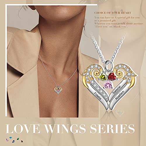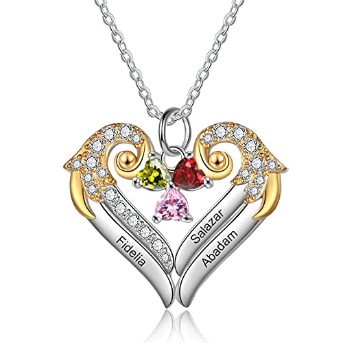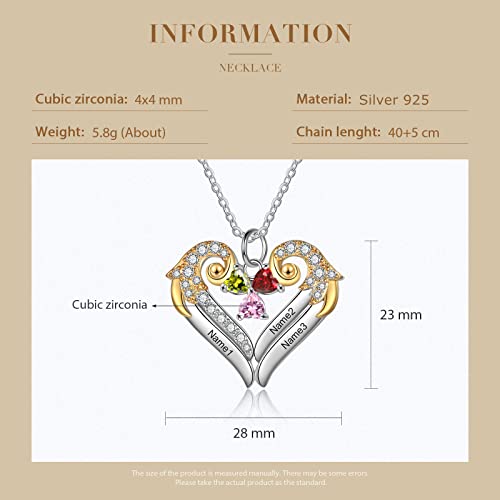 Collana Cuore per Donna Argento 925 Personalizzata Collana con Pendente Cuore 3 Nomi Incisione Collana con Pietra per Fidanzata Moglie Donne Regalo di Compleanno San Valentino (Argento-4)