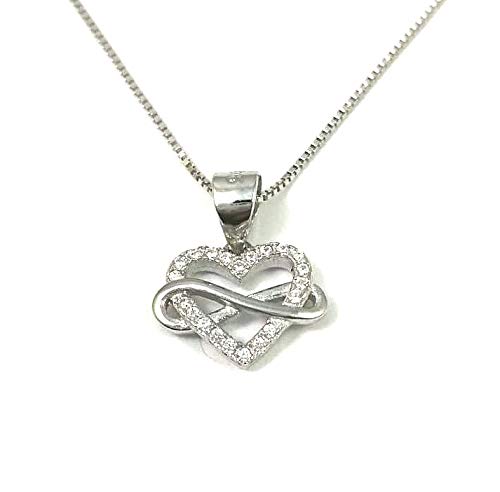 COLLANA CUORE INFINITO DA DONNA IN ARGENTO 925 RODIATO ORO BIANCO CON ZIRCONI