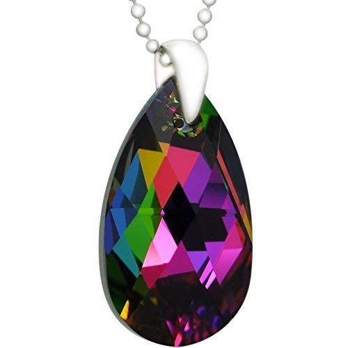 Collana da donna in argento sterling con pendente a forma di goccia nei colori verde, rosso, giallo e blu in cristalli Swarovski