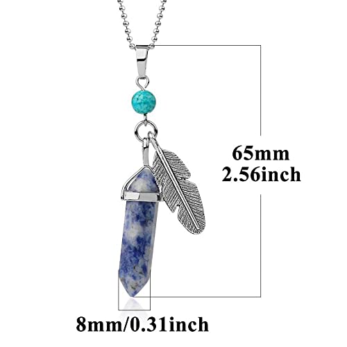 Collana da Donna in Pietre Naturali,Pietre di Lapislazzuli Naturali Pendenti in Pietra A Punta Esagonale Inciso A Mano con Piume d'Argento Nappa con Pietre Preziose Collane Gioielli da Donna Regalo