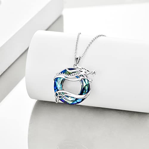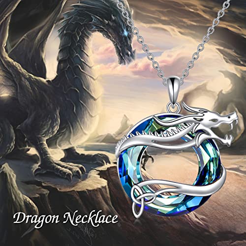 YFN Collana Drago Argento Sterling Ciondolo Cristallo Drago Gioielli Drago Celtico Regalo per Donna Uomo (blu)