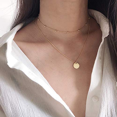 Collana Girocollo Con Ciondolo a Forma Di Disco a Strati Per Donne e Ragazze Argento Sterling 925 Delicato Cerchio Colletto a Moneta Due Doppie Catene Moda Gioielleria Confezione Compleanno Matrimonio