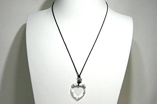 Collana girocollo cordino cerato nero con pendente cuore cristallo Svarovski e elemento sfera con strass