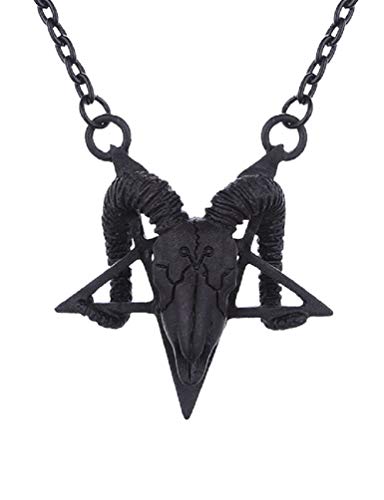 Collana Gotica di Restyle con pendente di Cranio di Montone in colore Nero Pentagramma