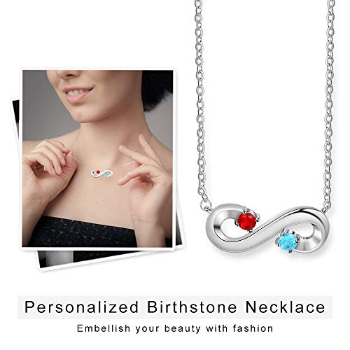 Collana Infinito Personalizzata Collana in Argento 925 Ciondolo con 2 Nomi Simulata Birthstone Incisione Madre Figlia Regalo per la Festa della Mamma San Valentino