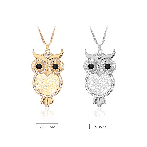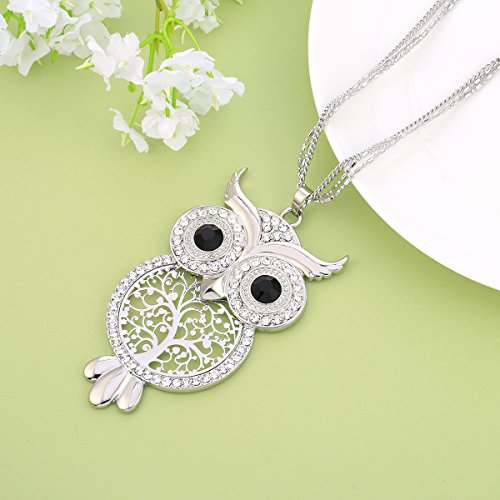 Collana lunga per le donne, Collana con ciondolo gufo per ragazze Collana con catena a più strati in oro o argento con cristallo (Placcato argento)