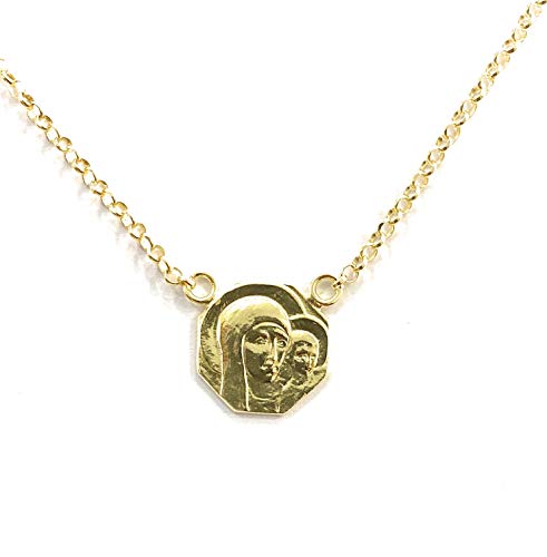 Collana con medaglietta della Vergine del Cammino Neocatecumenale ottagonale in argento sterling rivestito in oro 18 kt