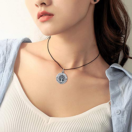 Collana con medaglione albero della vita in argento sterling 925 con foto foto collana con ciondolo a catena albero della vita ossidato famiglia di amuleti personalizzati per donne ragazze madre (B)