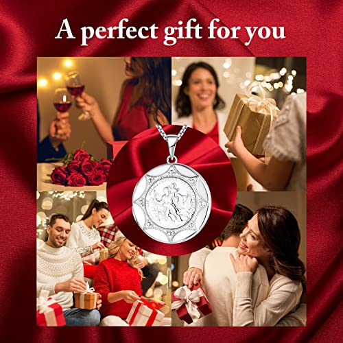 FJ Collana Medaglione San Cristoforo Argento 925 Ciondolo Talismano Protettore Religioso per Donna, Catena 45+5cm