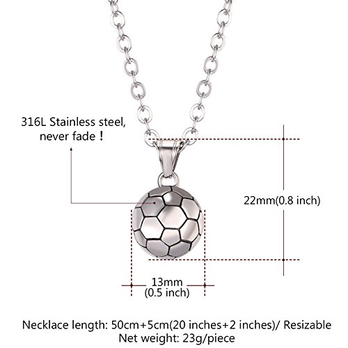 U7 Collana Pendente Uomo Donna Cindolo di Calcio, Catena Regolabile, Acciaio Inossidabile, Gioiello Sportivo, Argento Confezione Regalo Natale Compleanno