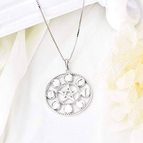 FJ Collana Pentagramma Pentacolo Argento 925 Collana con Ciondolo Eclipse di Luna Amuleto Wicca Gioielli Regalo per Donna