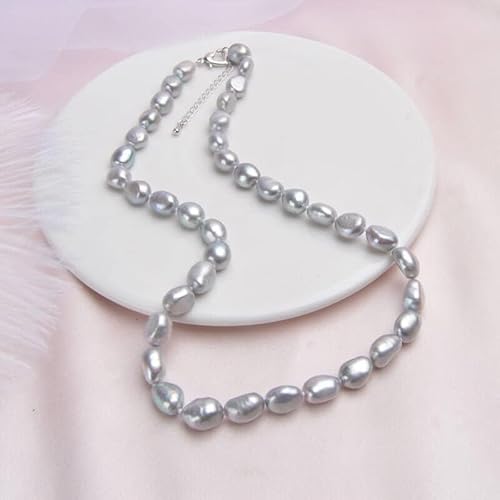 Collana Di Perle Barocche Naturali 9-10mm Gioielli Di Perle D'acqua Dolce Grigie Per Donna