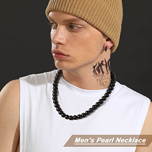 U7 Collana di Perle Donna Uomo, Nero Collana Perle d'acqua Dolce Catena, 40+5 cm Elegante Collana Donna Uomo Accessorio Gioielli, Idee Regalo Compleanno Natale per Adulti