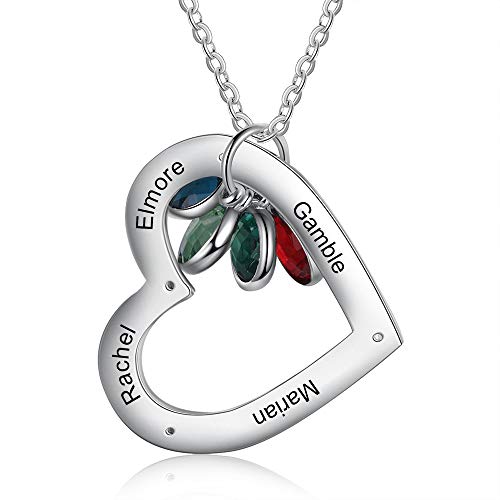 Collana Personalizzato Donna Cuore Argento Collane con Nome Inciso Collana per Regalo Madre Figlia per Compleanno Festa Della Mamma (Cuore 3)