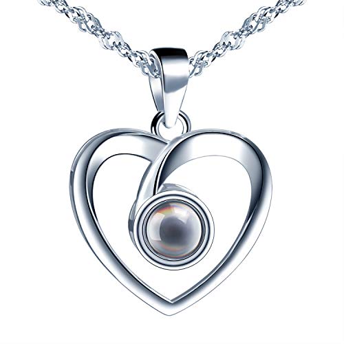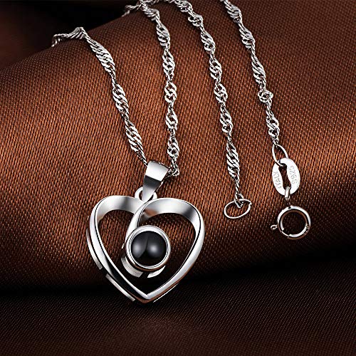 Collana che proietta la scritta “Ti amo” in 100 lingue, in argento Sterling 925, da donna, Pietra di vetro