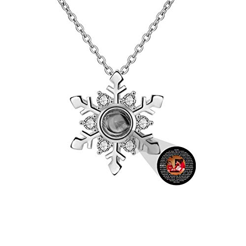 Collana di proiezione 100 Lingue Diverse Collana Ti Amo Collana con Foto Personalizzata Ciondolo Fiocco di Neve per Mamma(Colore Argento Completo 18)