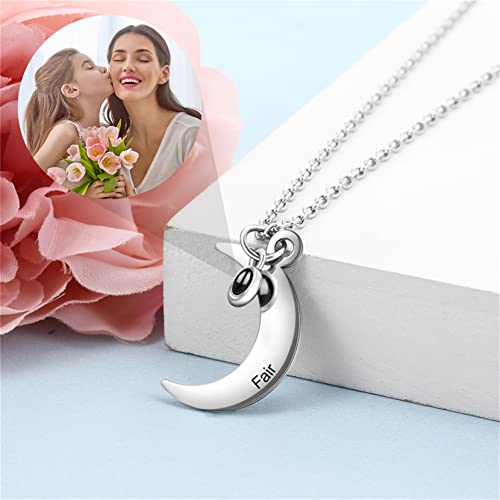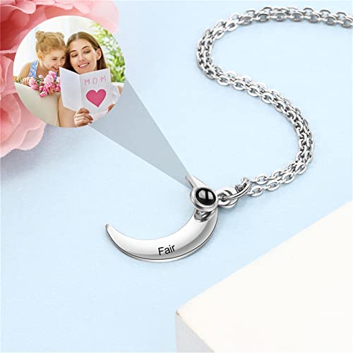 Collana con proiezione personalizzata Nome Collana con foto Collana con luna in 100 lingue Anniversario per donna Regalo per mamma(Rame-Argento 22)